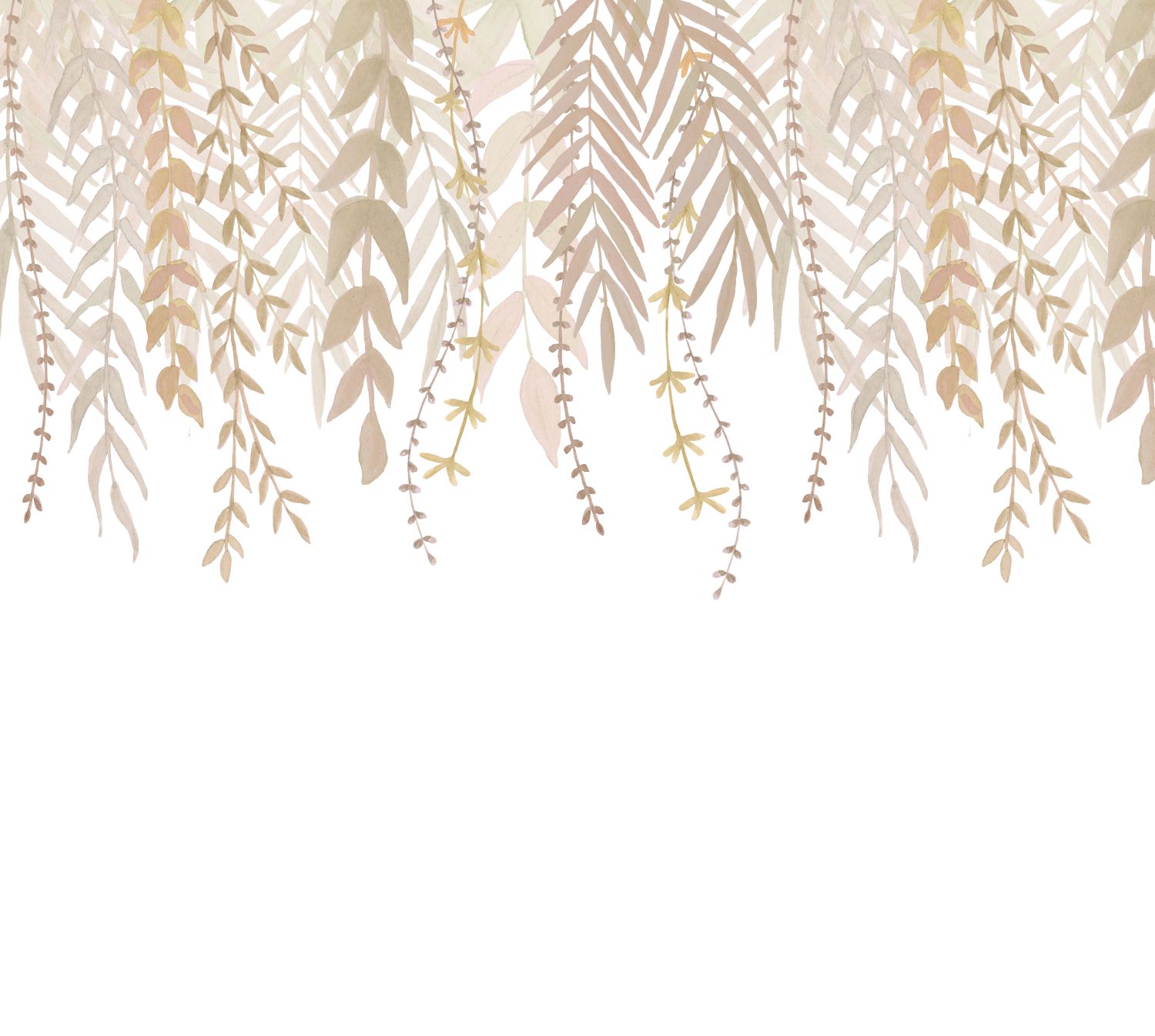 O Painel de Parede Folhagem Barrado Aquarelado tem o fundo claro, com imagens de plantas no tom verde claro.