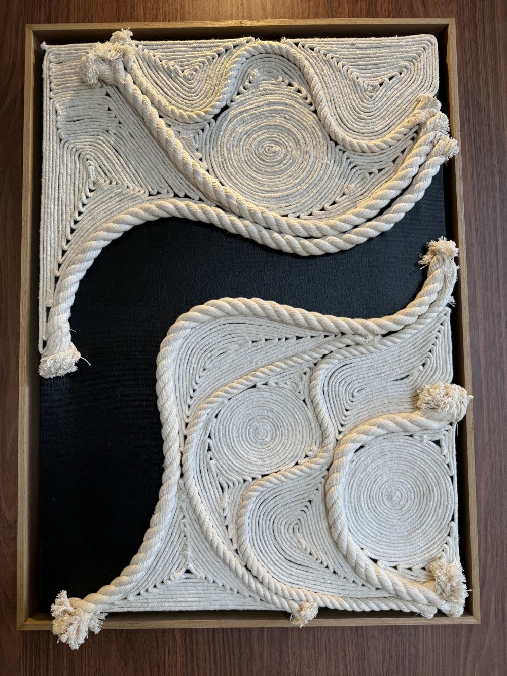 Material: Moldura: Madeira. Arte Textil cordas em tela Canvas.